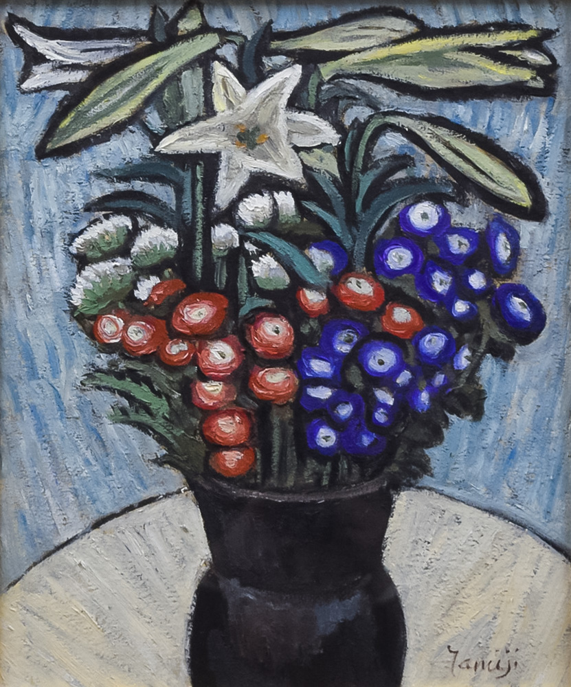 | 北川民次 百合とアスター (キャンバス、油彩) [画寸法 455×380mm] 1962年作 日本洋画商協同組合 鑑定登録証書 有 TAMIJI KITAGAWA |
