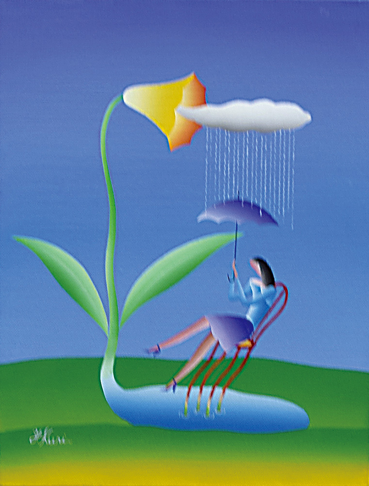 | 久里洋二 湖水からの雲 (アクリル 5号)1990年作 自筆証明書 YOJI KURI |