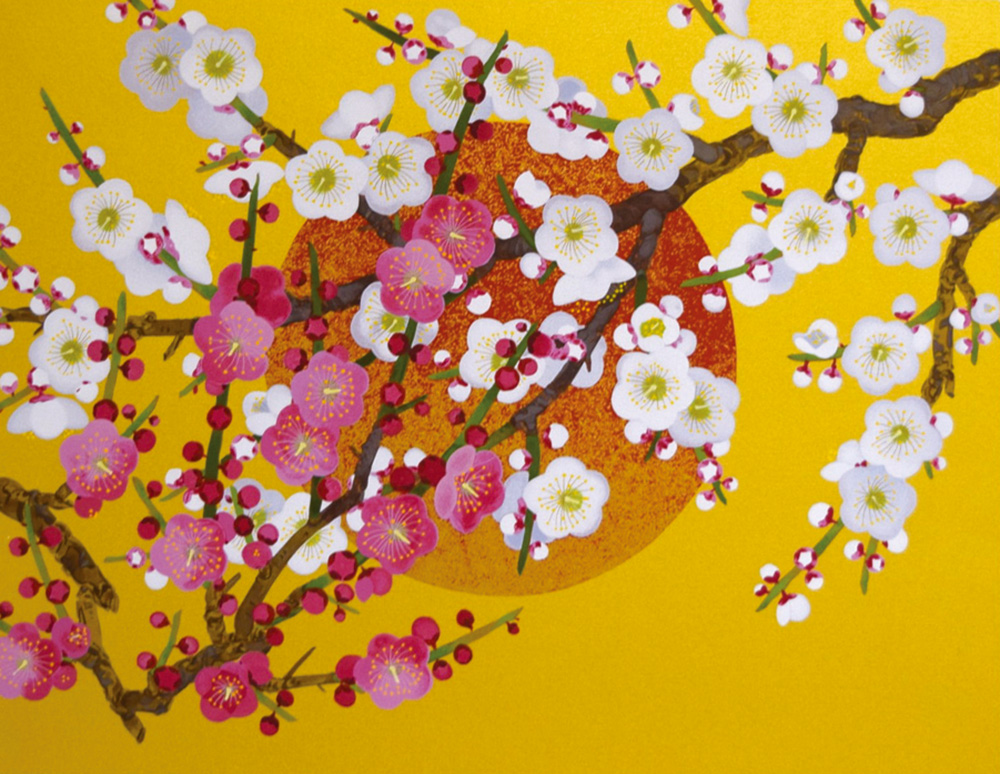 | 中島千波 阿蘇一心行の櫻 SOLD OUT (シルクスクリーン 手張り本金箔) [画寸法 400×800mm] CHINAMI NAKAJIMA |