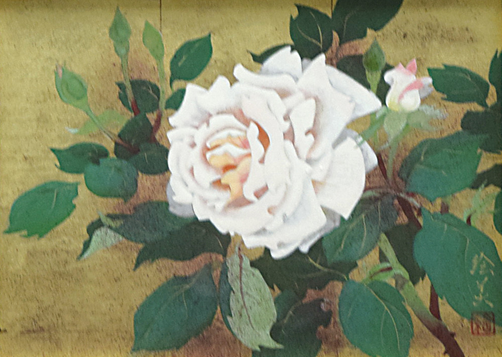 | 湯口絵美子 薔薇(ホワイトローズ) (紙本彩色 4号) EMIKO YUGUCHI |