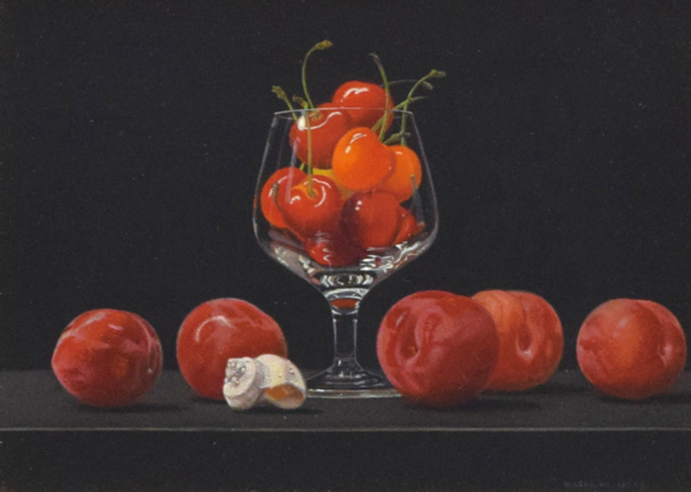 | 池田誠史 グラスとサクランボとプラム (油彩 4号) MASAFUMI IKEDA |
