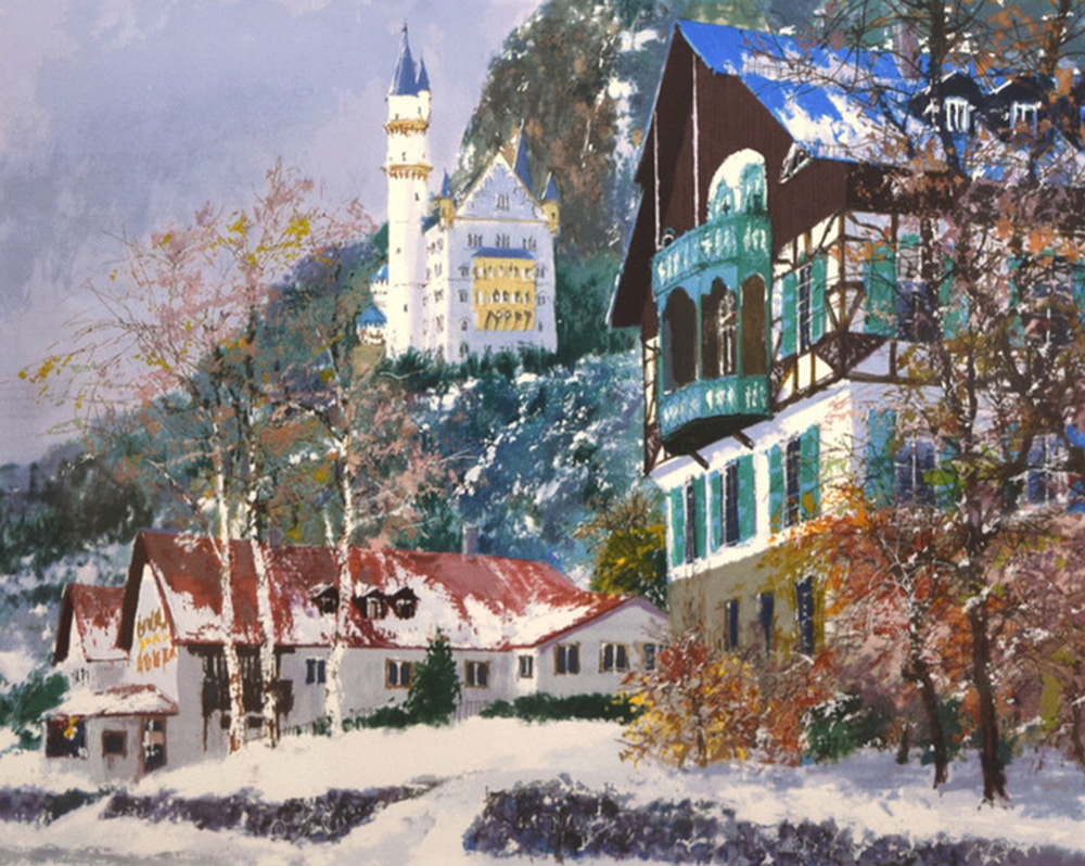 | 小田切 訓 雪のノイシュバンシュタイン城 (シルクスクリーン サイン・番号入り) [画寸法 450×555mm] SATOSHI ODAGIRI |