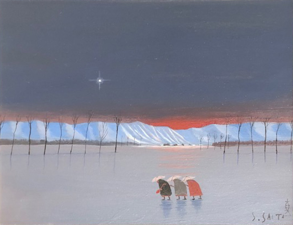 | 斎藤真一 朝の光 越後瞽女日記 ’82 (油彩・板 0号) SHINICHI SAITO |