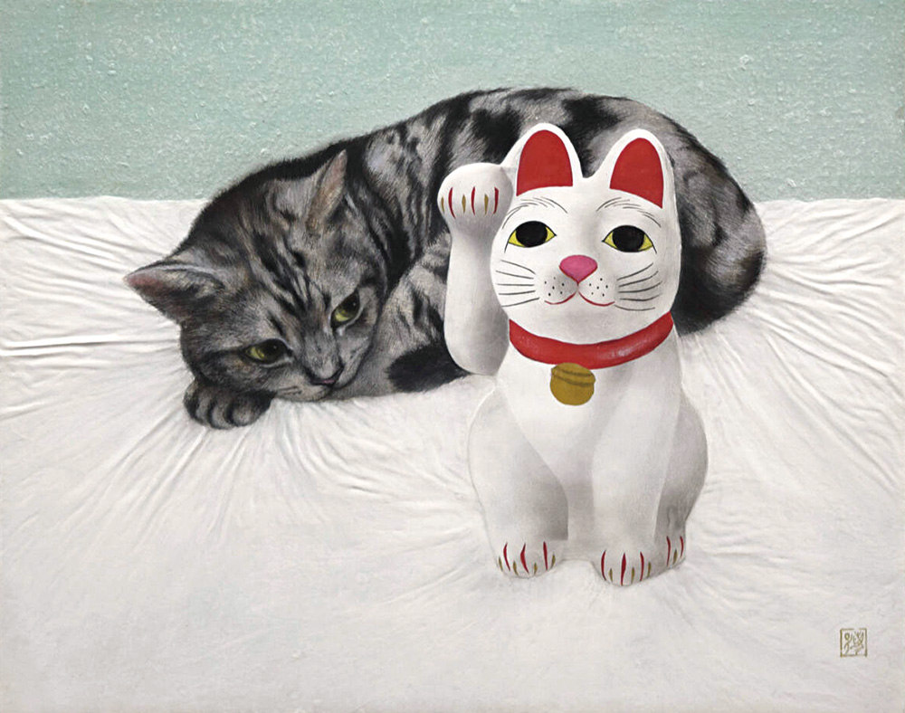 | 坂本藍子 招き猫猫 SOLD OUT (紙本彩色 6号) AIKO SAKAMOTO |