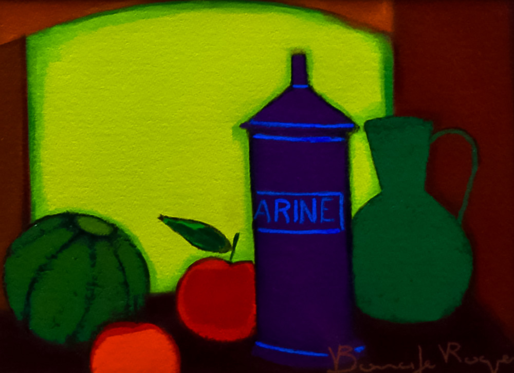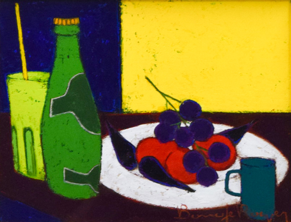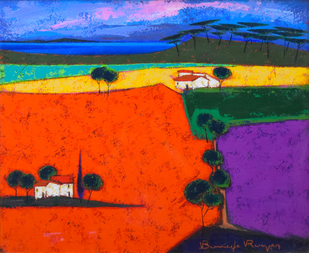 〜画家ロジェ・ボナフェの作品が色彩の芸術だというのは、確かに月並みな表現かもしれない。しかしながら彼の描く風景、静物、人物の中で最も我々の目を惹きつけるのは、血潮の赤であり、曇りない青であり、輝く緑ではないだろうか。人や物や彼を取り巻く全てのものに対する愛情の歌なのだ。何故ならば南仏に生まれ育ったボナフェの人生そのものが色彩に溢れているからである。